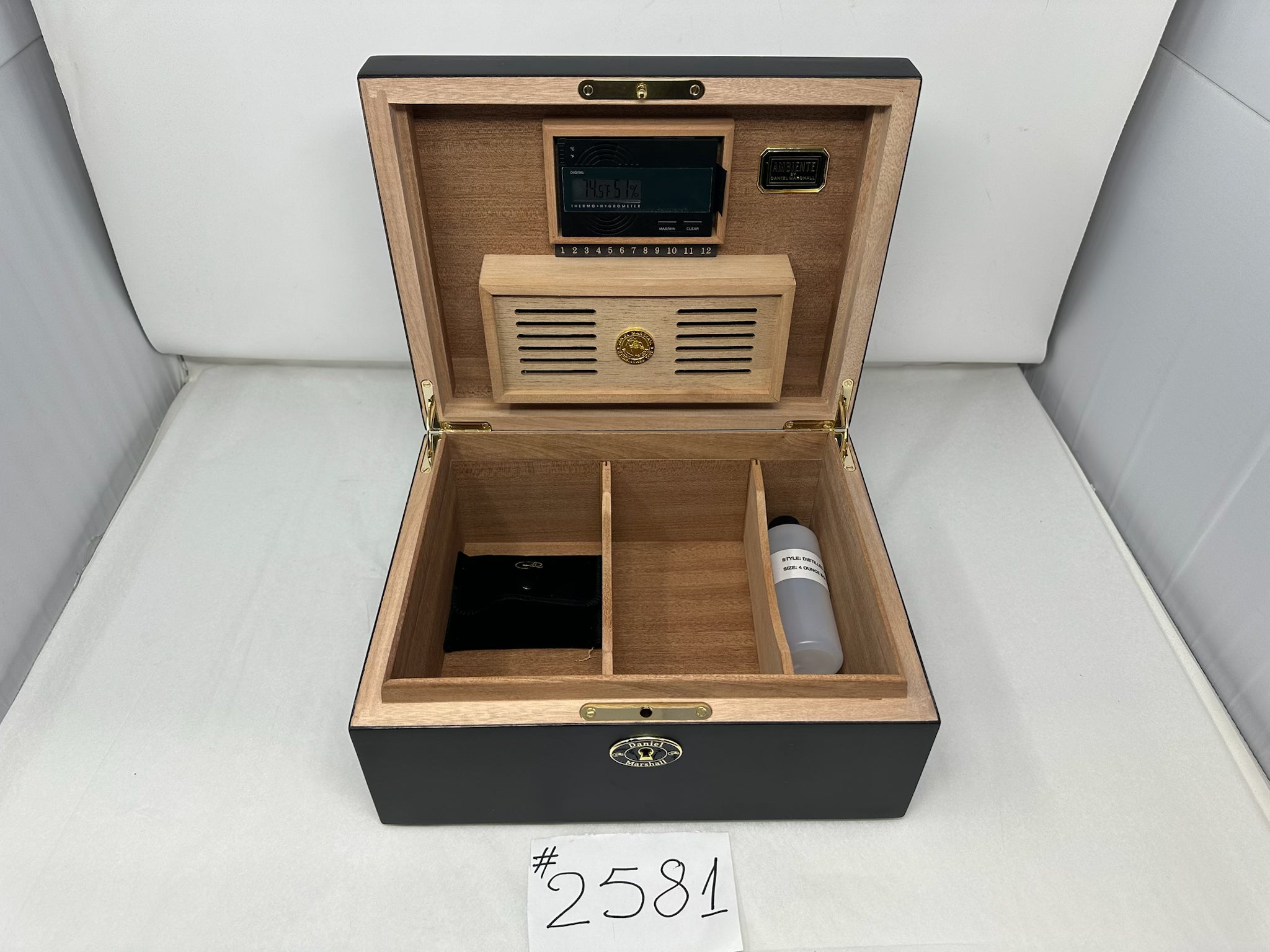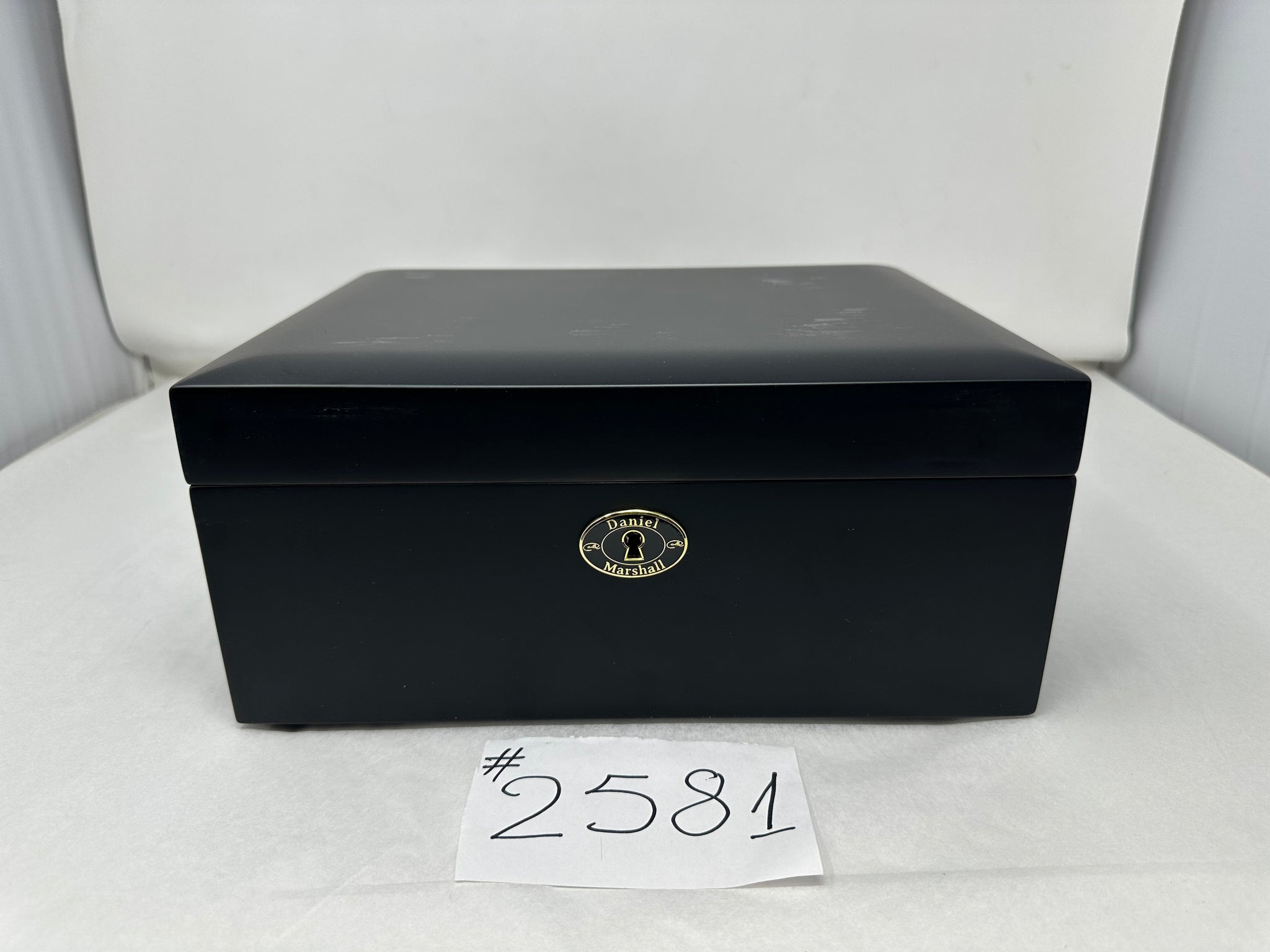 THIS IS A NEW, SLIGHTLY FLAWED DANIEL MARSHALL HUMIDOR. ALL HUMIDORS COME WITH A FULL LIFETIME WARRANTY AS REGULAR NON-SALES ITEMS DO.