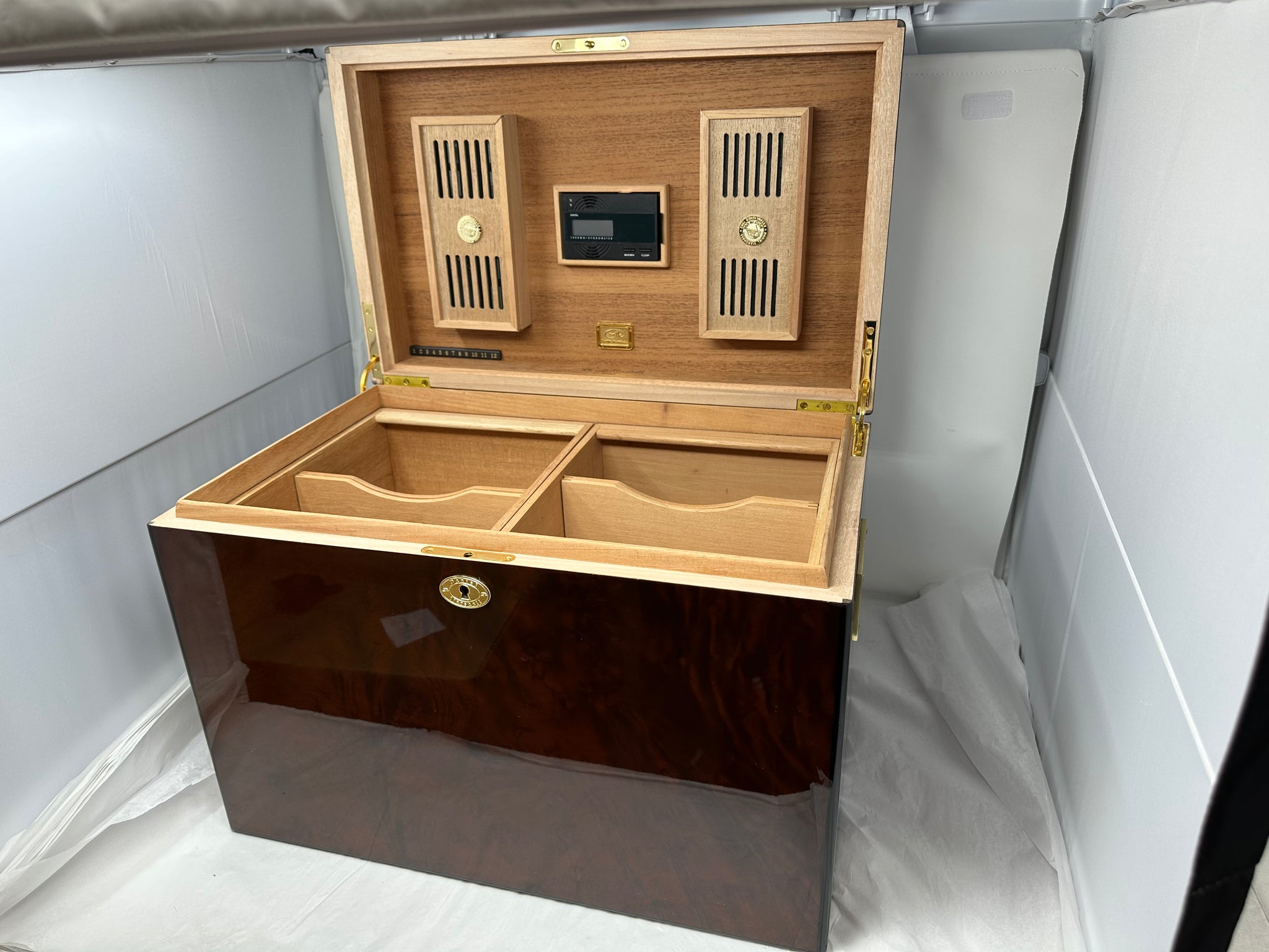 AUTOGRAPHED DANIEL MARSHALL LIMITED EDITION 500 CIGAR HUMIDOR IN BURL WITH 4 LIFT OUT TRAYS