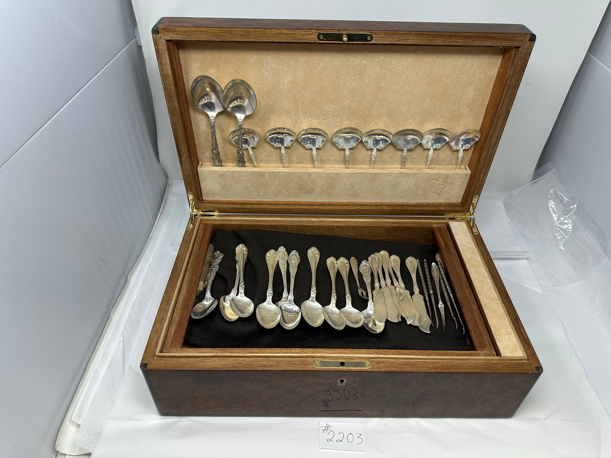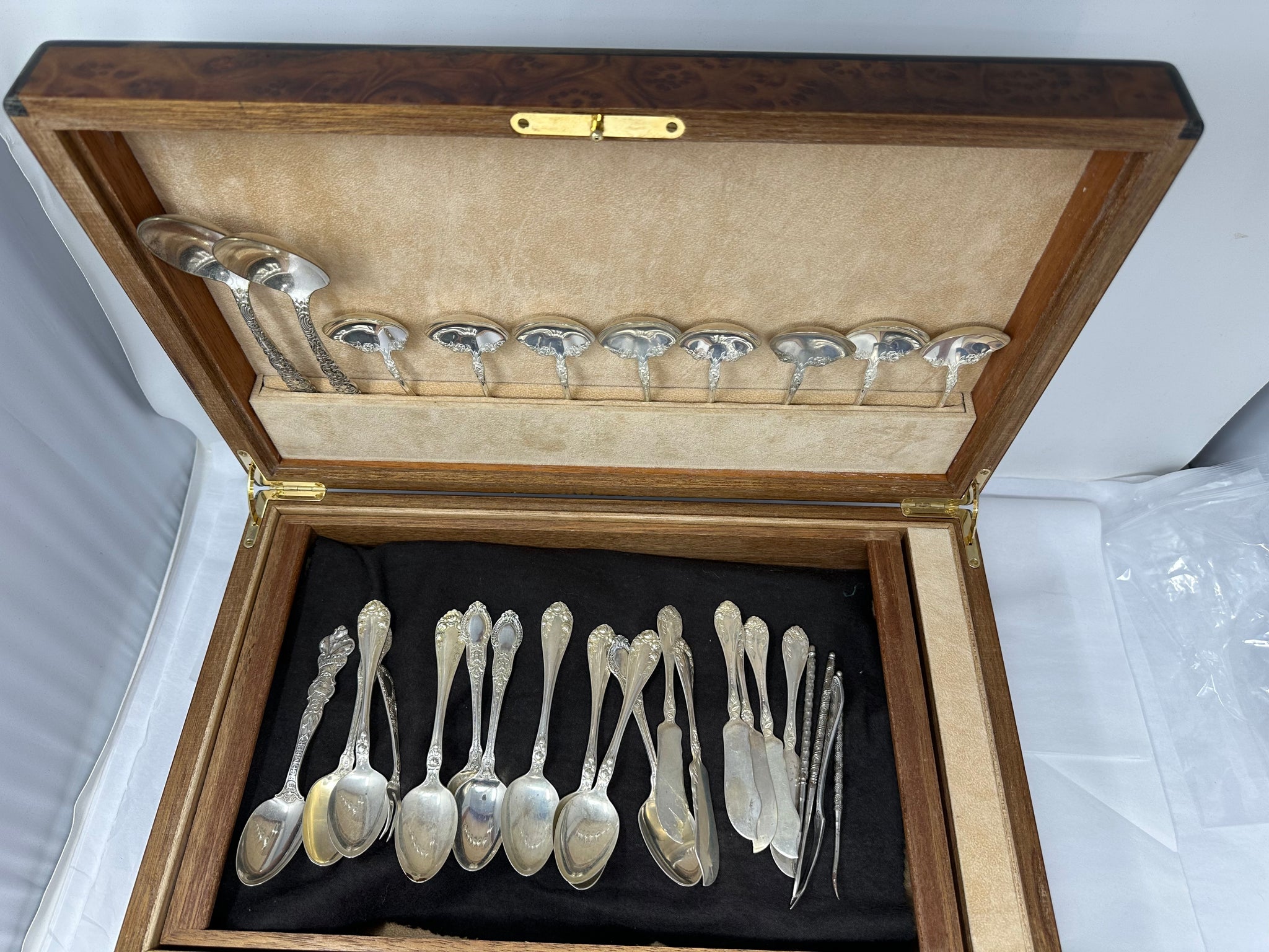 HISTORIC AND RARE MADE FOR TIFFANY & CO  THIS STERLING FLATWARE CHEST BY DANIEL MARSHALL HOLDS A COMPLETE SET OF STERLING SILVER FLATWARE HAND UPOLSTERED IN TARNISH RESISTANT CLOTH. DM MADE 4 OF THESE SAME CHESTS FOR TOM CRUISE AND NICOLE KIDMAN'S WEDDING. THIS CHEST FEATURES A BURL PATTERN THAT WAS THE MOST DRAMATIC AND BEAUTIFUL THAT WE HAVE MADE IN THE LAST 4 DECADES. THIS IS ONE OF OUR MASTERPIECES AND WILL NOT BE CREATED AGAIN