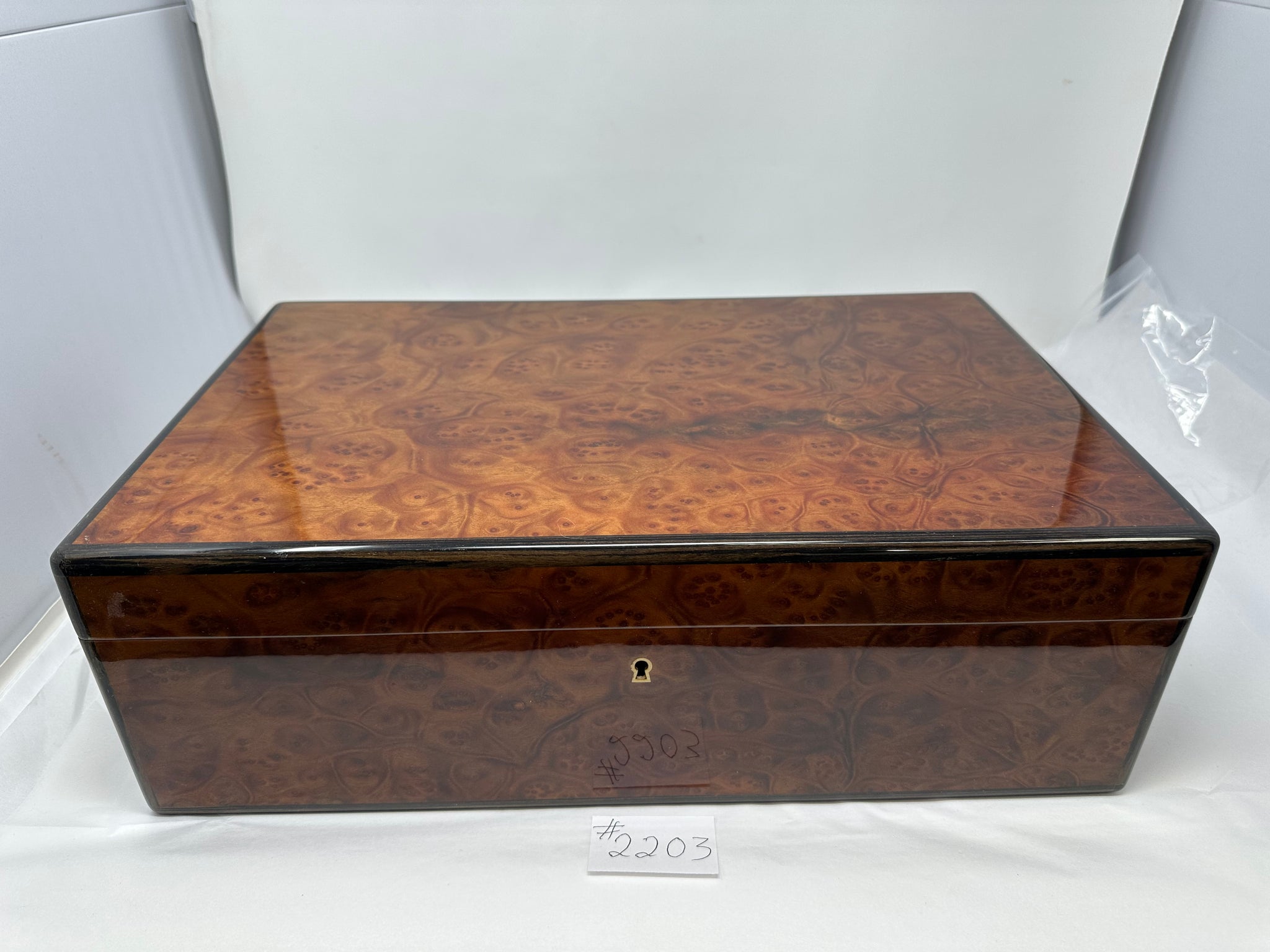 THIS IS A NEW DANIEL MARSHALL FLATWARE CHEST. ALL HUMIDORS COME WITH A FULL LIFETIME WARRANTY AS REGULAR NON-SALES ITEMS DO.